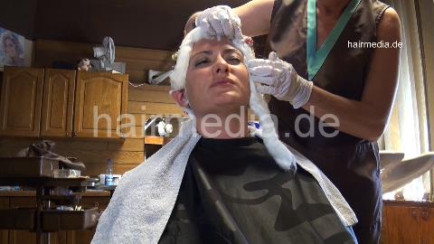 1018 Brigitte 5a barberette in rollers and apron Nylonkittel perming Inessa Part 1