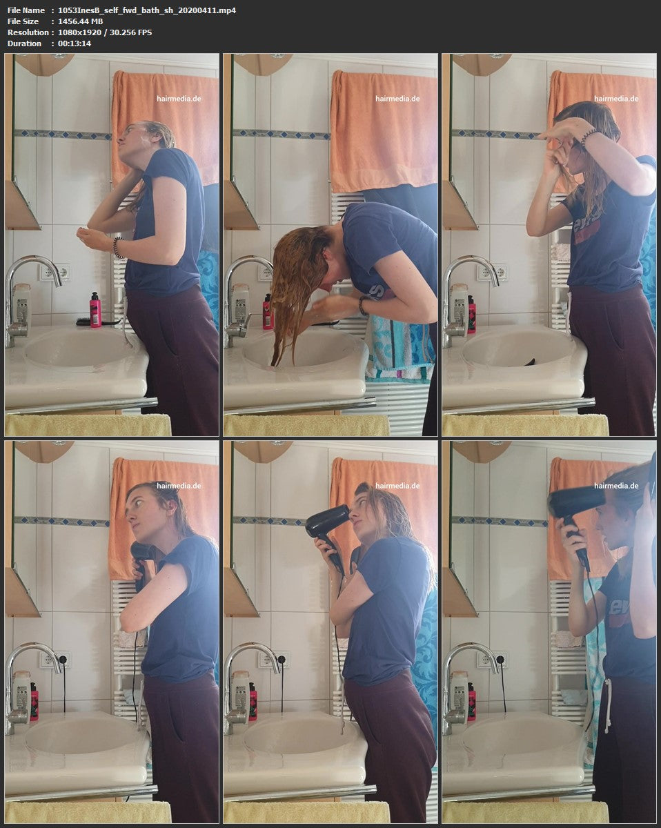 1053 InesB 20200411 self forward bath shampooing 13 min HD video for download