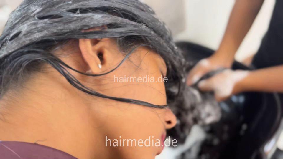 1242 250820 Niharika salon forward manner shampooing at backward station long hair