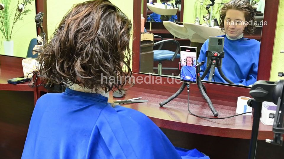 1243 XeniaM 6 wet haircut and blow by barber, multicaped
