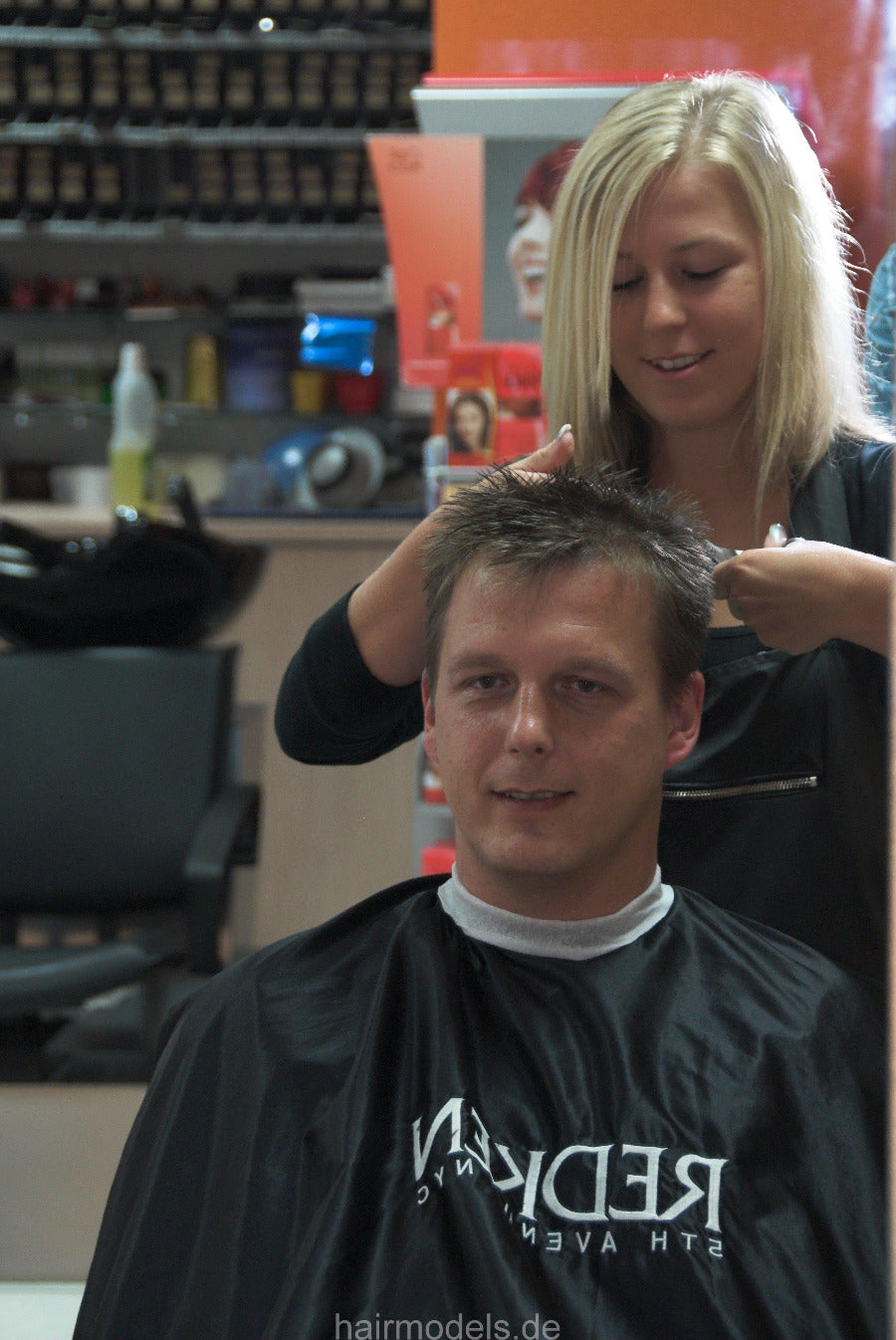 172 JasminF wash and blow male client by hairdresser student