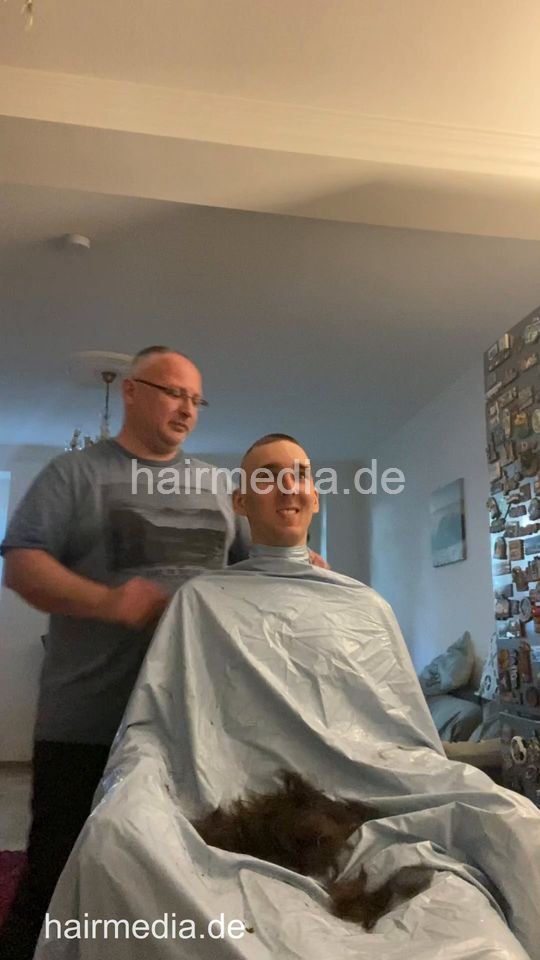 2012 230520 salon buzzcut headshave in blue pvc cape