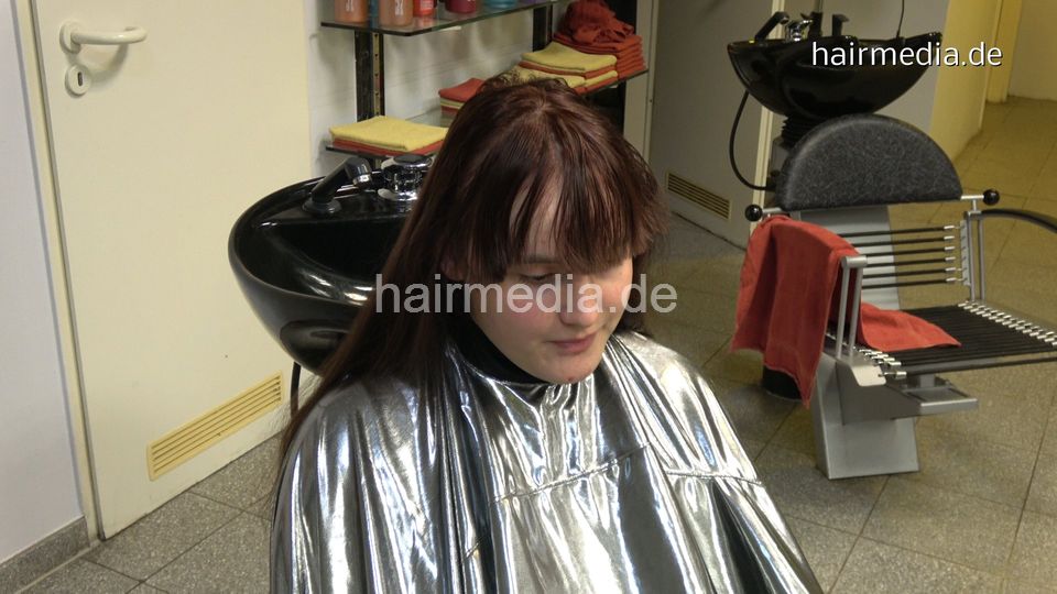 388 06 Celestina teen by barber wash backward in heavy PVC cape