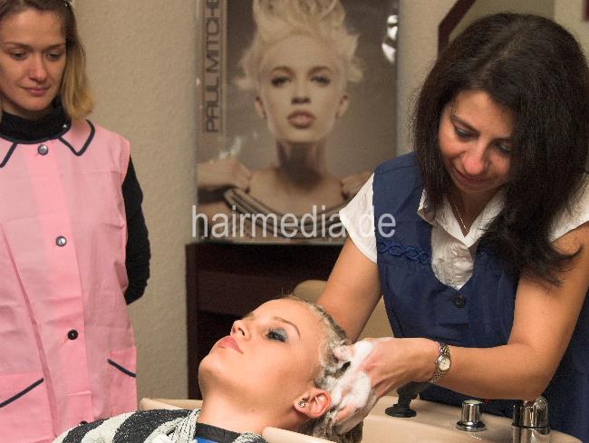 199 5 Vanessa by Melanie backward wash hair student watching in aprons