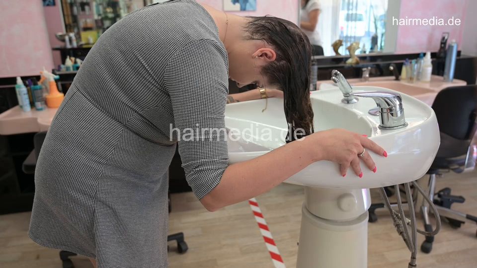 539 13a Paulina forward shampoo hair ear and face over backward salon shampoostation by barberette moviecam