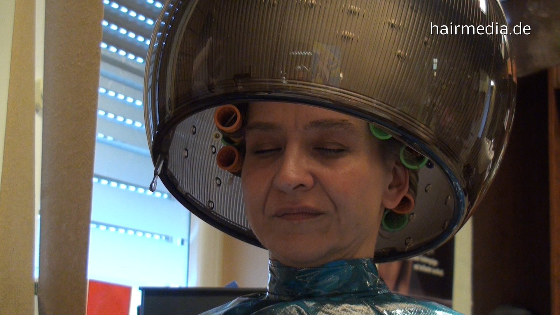6157 ClaudiaS longhair 3 under the dryer in PVC cape ASMR