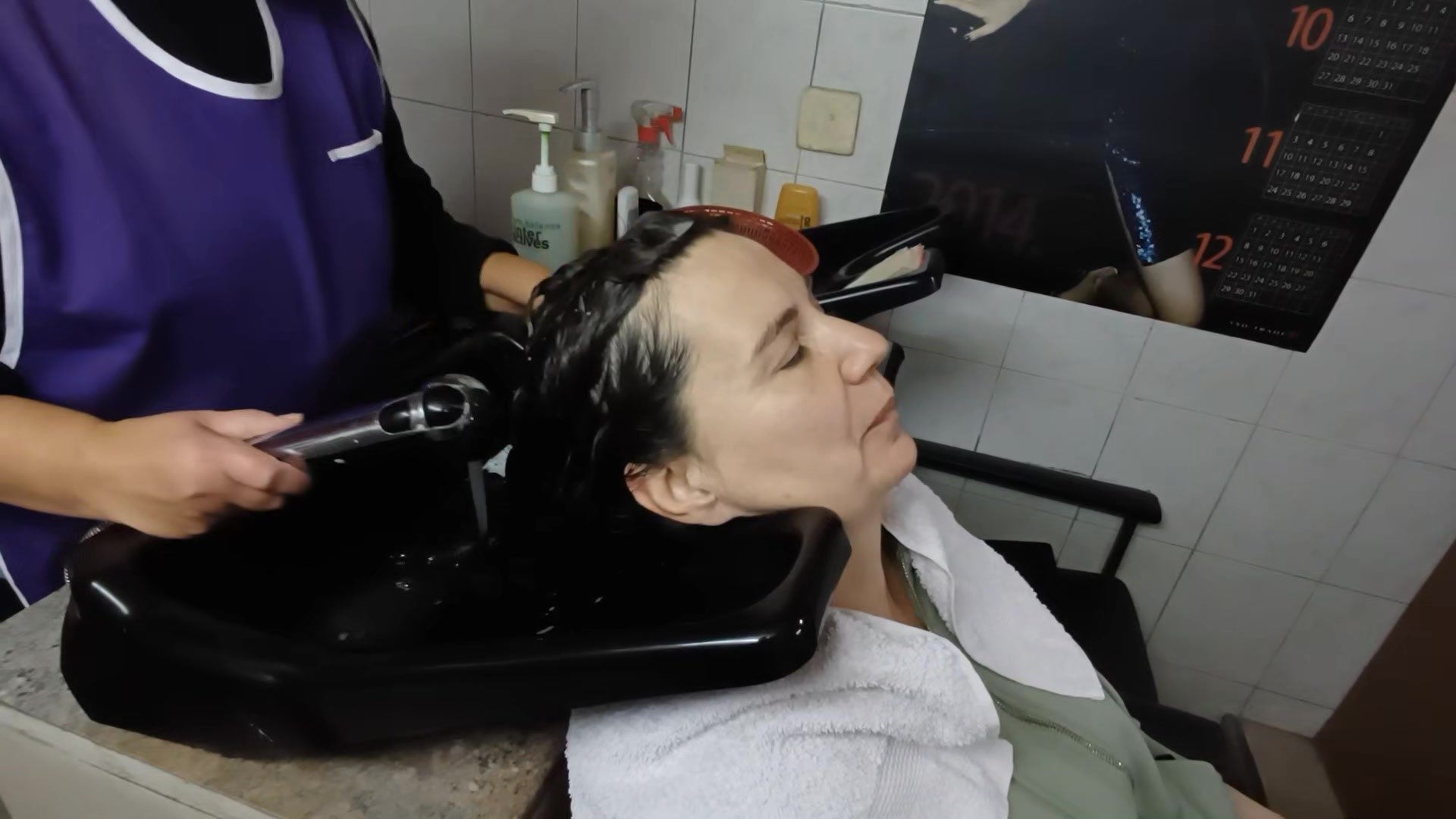 IvanaK mom. Wasn't model before, she had a real perm. Only shampoo bowl part after perm filmed. Waiting at the bowl, perm rods taking off and shampoo by old lady barber Ružica