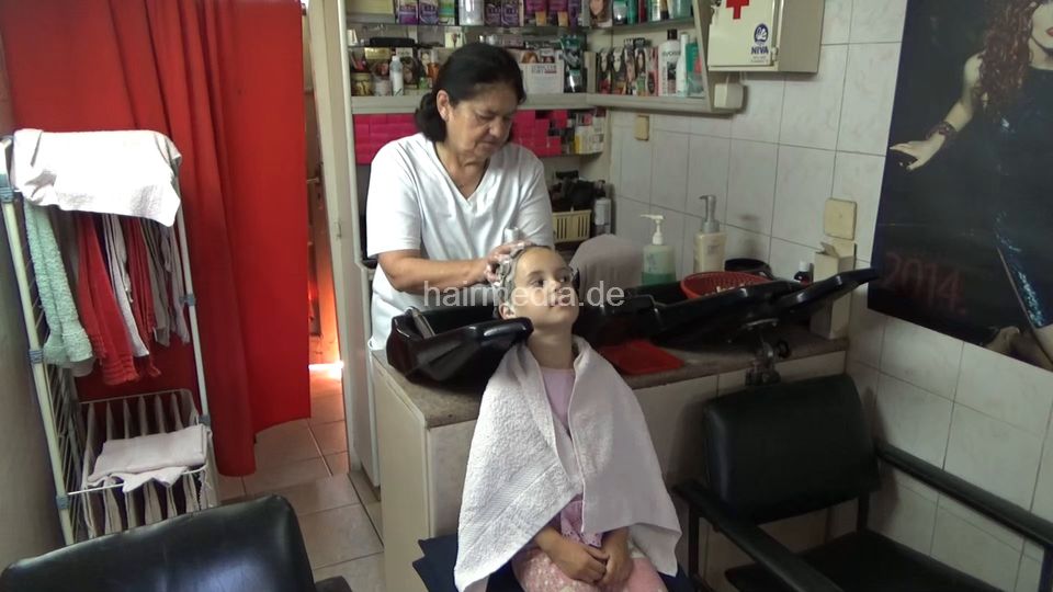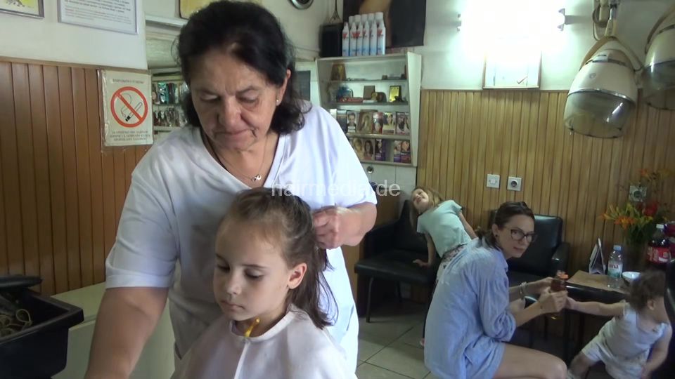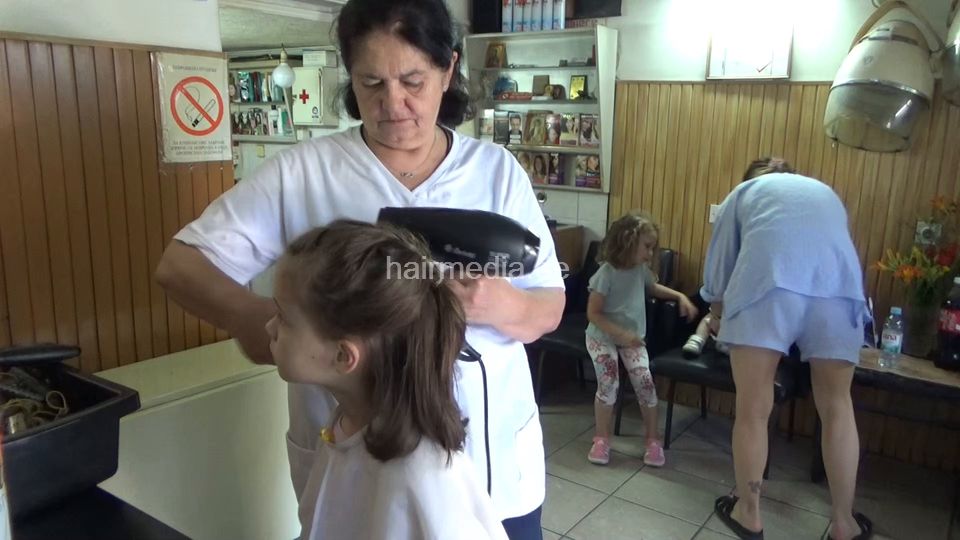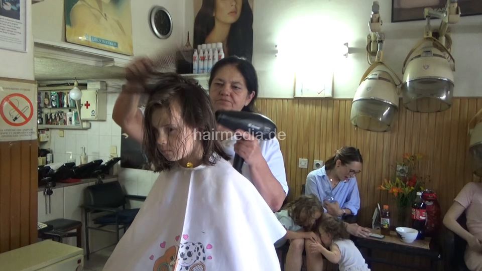 KathrinP mother - mom came with very young DunjaP kid and DinaP kid. Regular shampoo cut and foenen for the girls and the same for the mother except she is going a little bit under the dryer.
