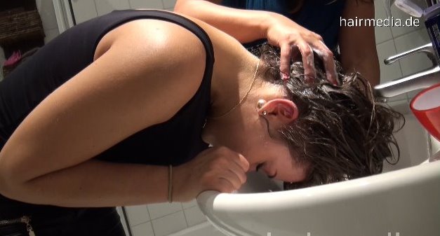 7079 KristinaB latex pants 5 final shampoo forward in bathroom by VanessaDG