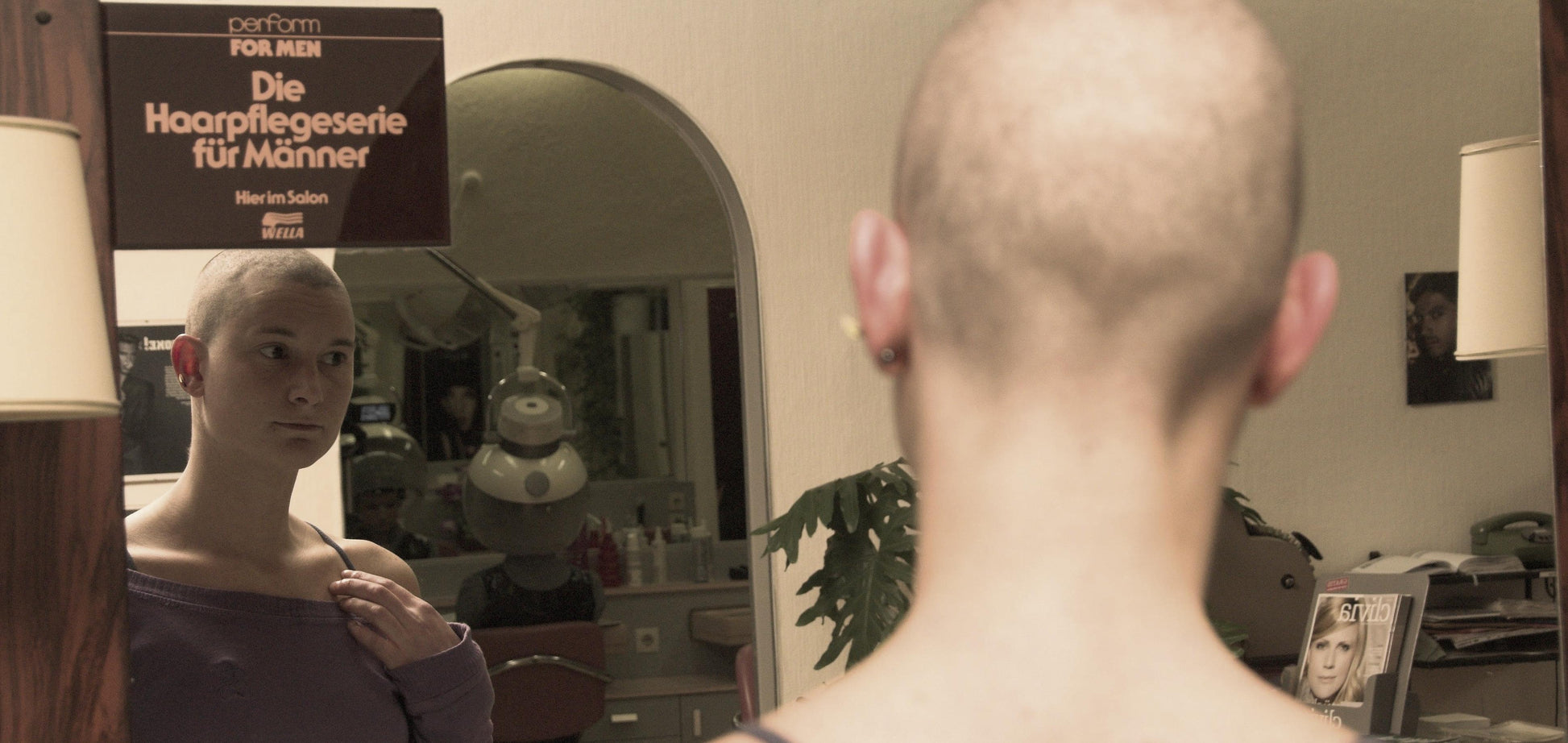 Watch as barberette Ilona gives her client Laura a fresh head shave, trading her beautiful curls for a smooth, bold statement. Step out of your comfort zone with this intense video featuring rollers, freshly washed hair, and a vinyl apron.