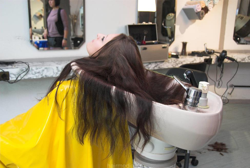 8066 NicoleW in yellow vinyl shampoocape shampooing