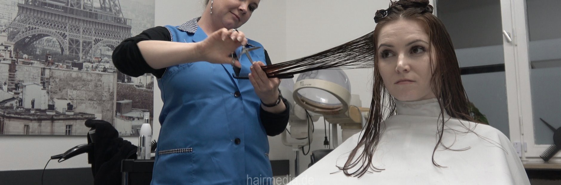 8300 JuliaR by MelanieM 3 haircut in barberchair in vintage barbershop in large cape