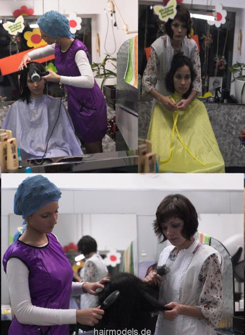 b003 CarmenK blowout by barberette AnjaS in rollers and Laura, 4-hand blow