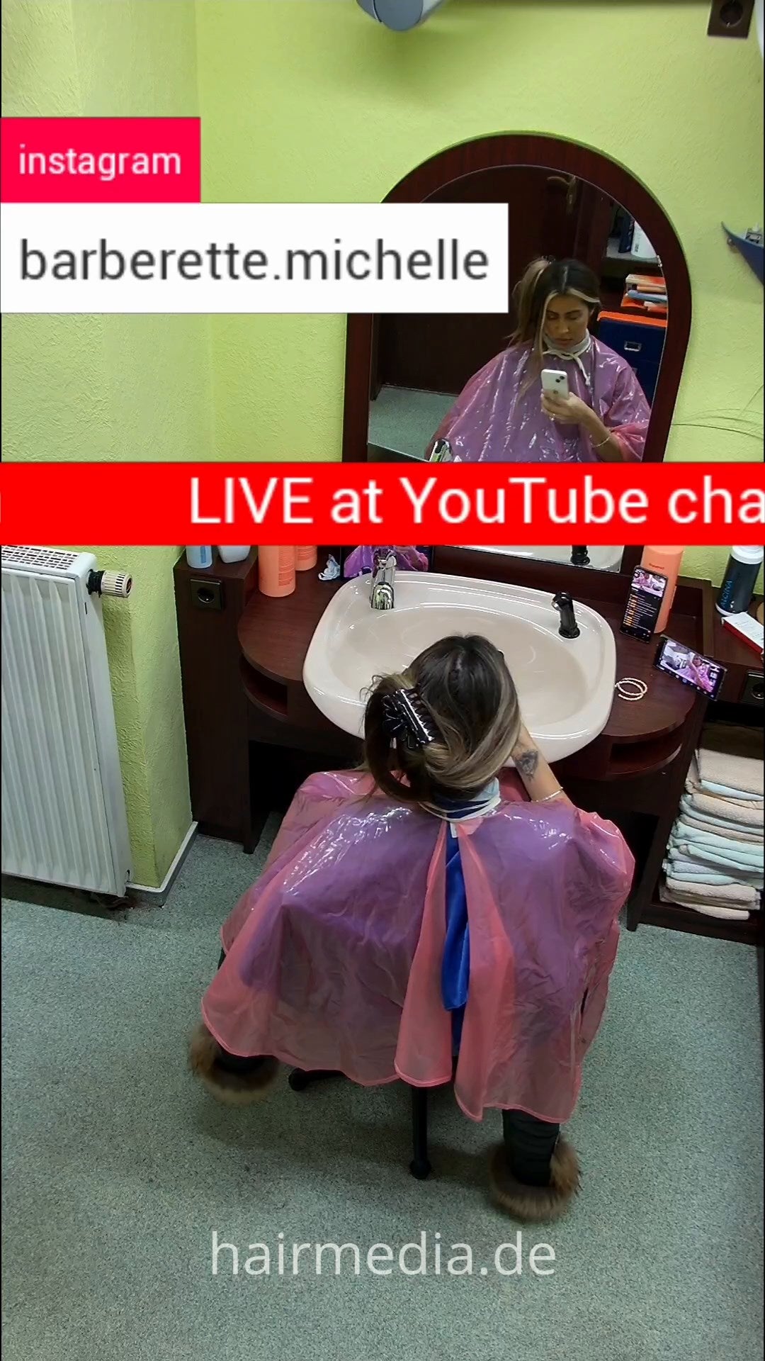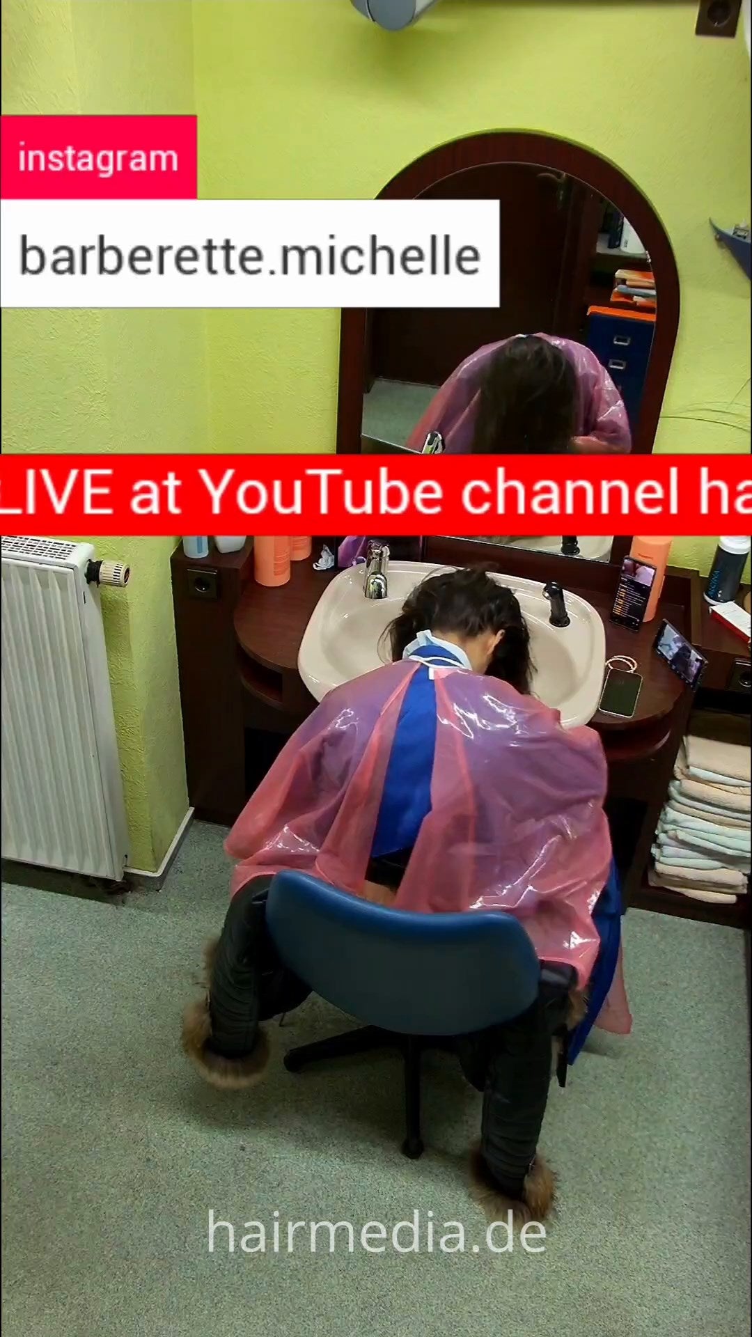 private livestream Zoya leatherdress long forward shampooing and blow out by barber multicaped