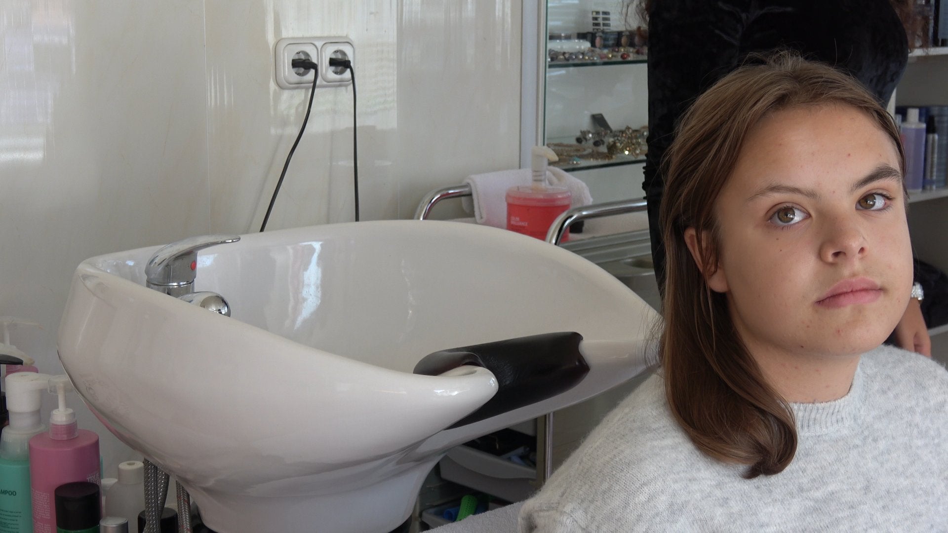 391 s1864 teen backward wash by student barberette Lida