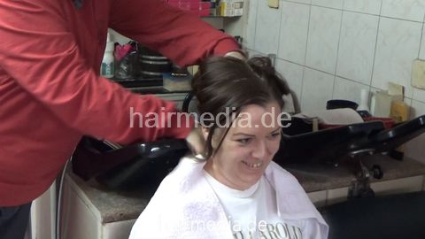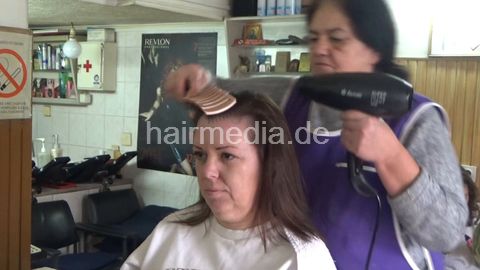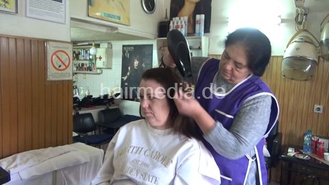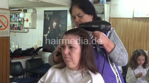 MarijaV is shampooed by old barber lady Ružica, then she has a wetset. Before she goes under the dryer, she is doing her makeup, also filmed. Her time under the dryer is covered only in background footage. You can find all those movie clips in her folder.