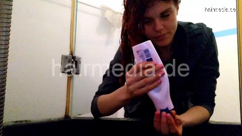1150 JulieS redhead home 210303 self shampooing forward in CZ and blow out