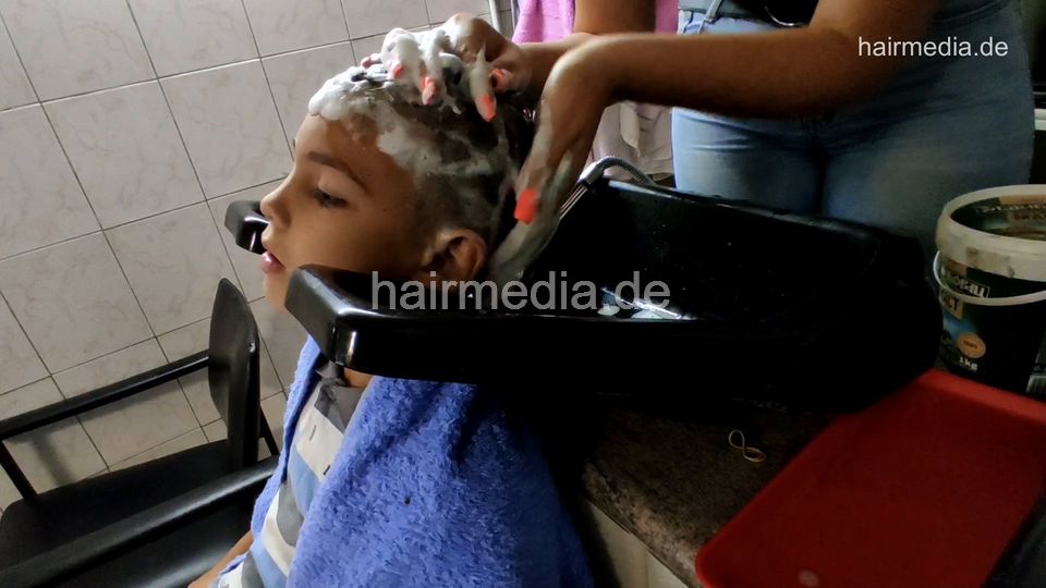 1170 Lazar 6 years old boy backward hairwash shampooing by NevenaI camera 2
