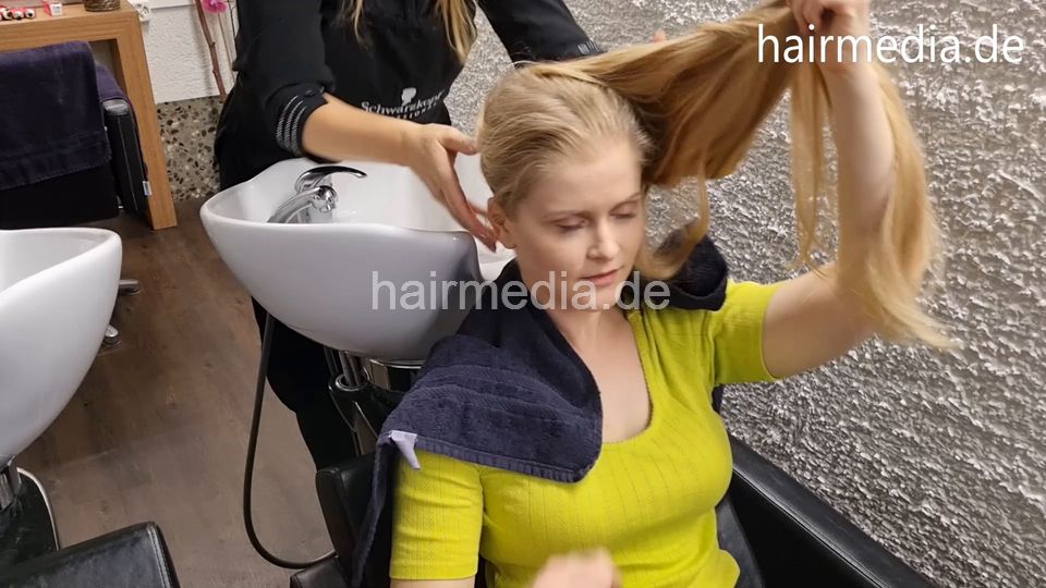 Indulge in luxury hair care with 1248 Nataliia XXL blonde hair JMK 01 custom trial salon shampoo and blow. Watch the stunning Nataliia in action, treating her long blonde locks to a wash and blowout at her favorite Swiss salon. Experience the comfort of the specialized backward wash basin for long hair. No more pesky wash capes needed!
