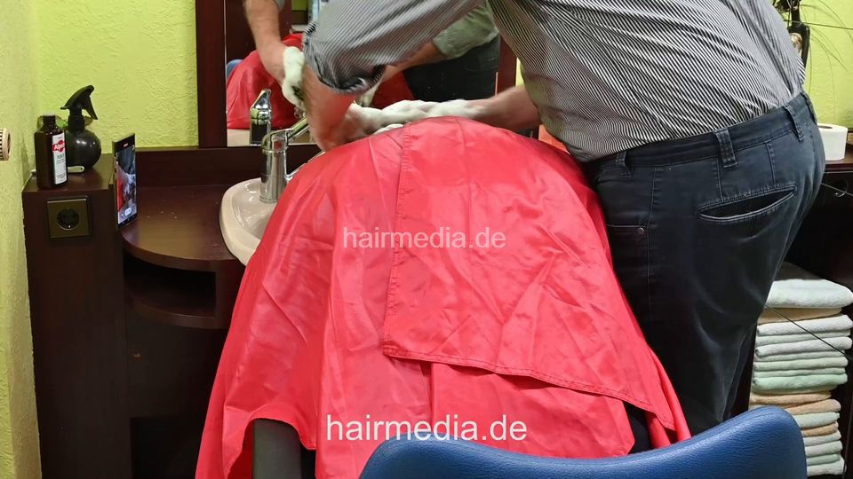 2303 mom Barbara forward shampoo and blow by barber, controlled by son
