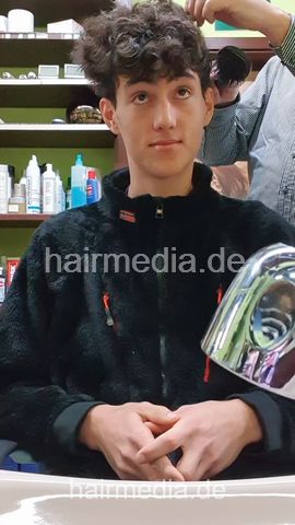 Experience the thrill of young man Felipe brought by his mom to the salon! Watch as the barber confidently washes and styles his hair while being filmed by a ceiling camera. Take a bold risk and witness the beauty of this mother-son bonding moment.