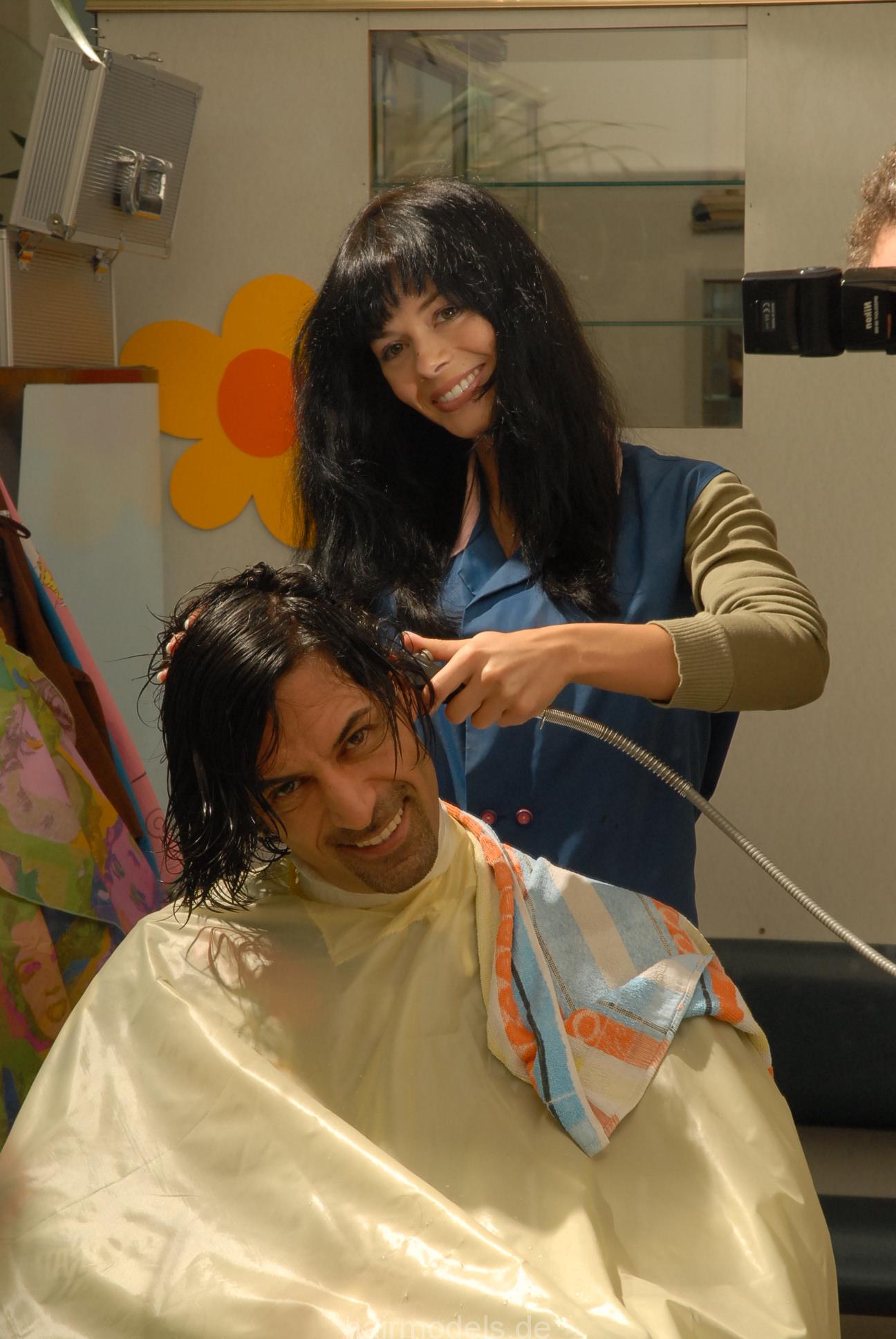 236 Plumber Felix by Barberette Andrea in Nylon Apron shampooing forward