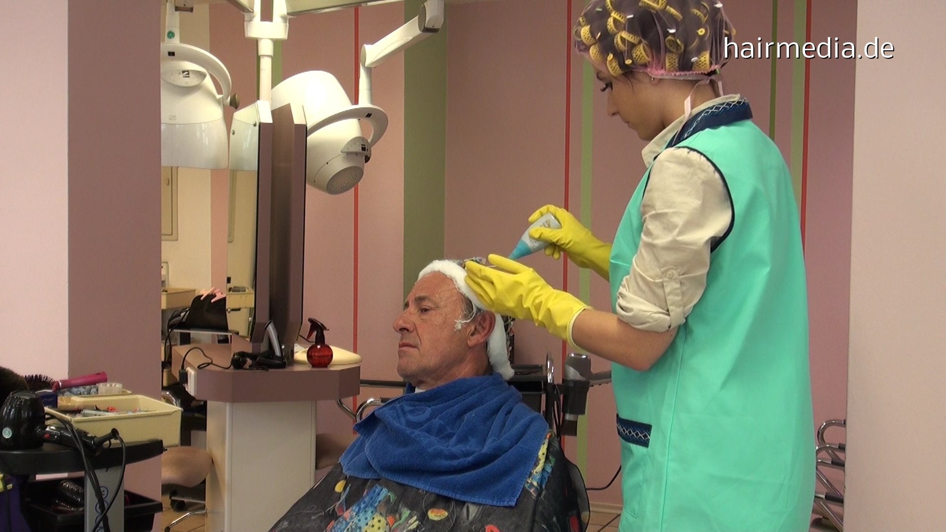289 4 forced perm by barberette in rollers and rubber gloves