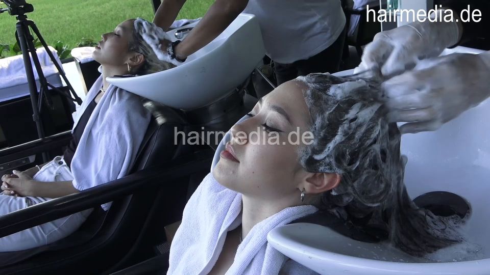 359 Valeria and Julia synced Movie 1 several shampooing backward, haircare and blow out by barber