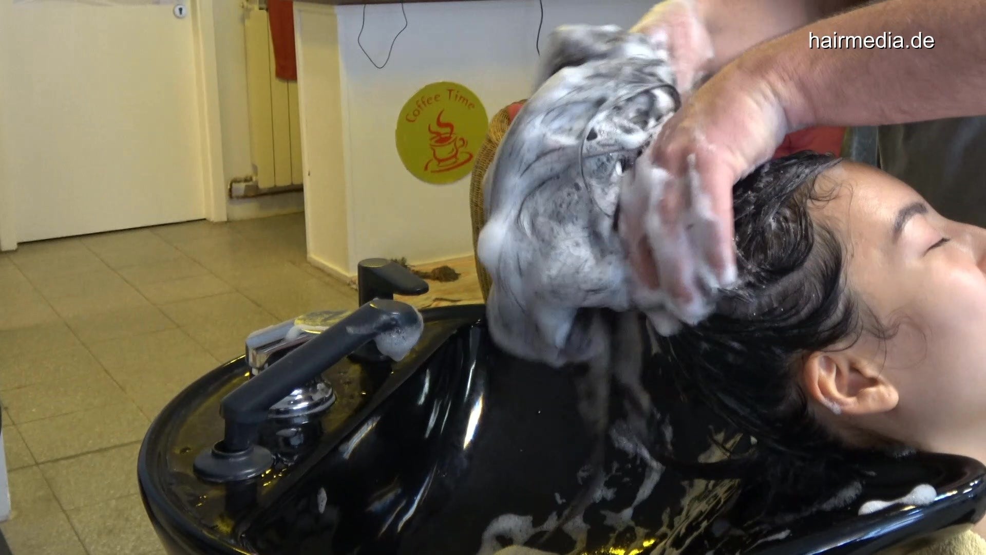 392 JasminR 2 long asian black hair by old barber backward hairwash