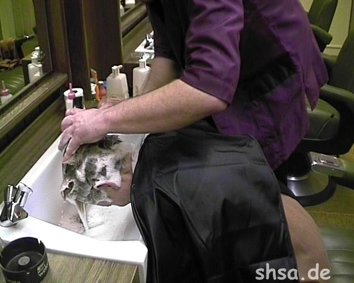 519 FD salon owner mature lady by barber forward bowl shampooing