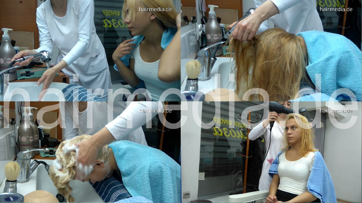 531 Triple Dragana a blond hair bend over forward wash shampooing