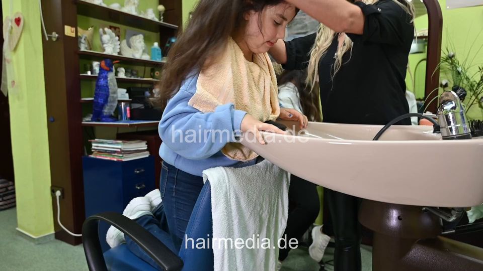544 Paulina and Mashid session younger daughter 2nd run hair kneeling forward wash and blow - second run