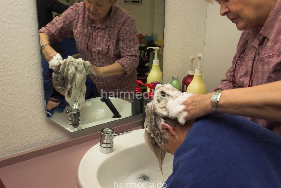 6115 Barberette MelissaHae 1 forward wash by her boss in salon