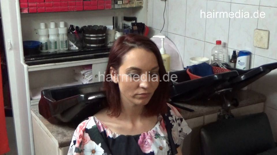 6217 Mother and teen daughter: Mom Marijana redhead shampoo by barber and cut and cut