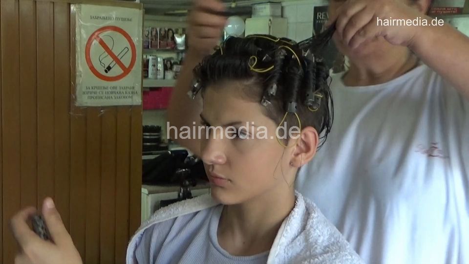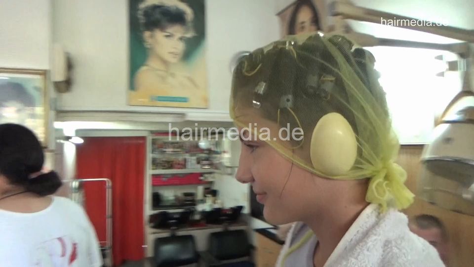 6219 Four girls: smoking bobed Bojana shampoo by barber, haircut vintage wetset