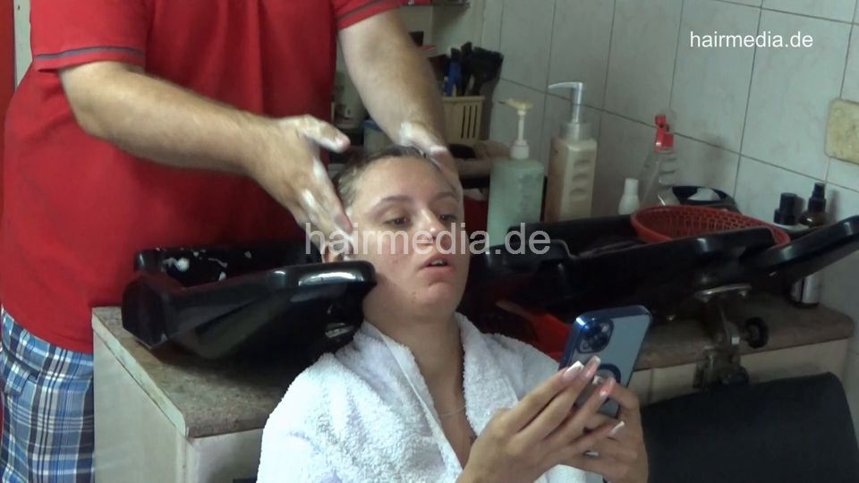 6219 Four girls: IrenaL shampoo by barber, vintage blow dry