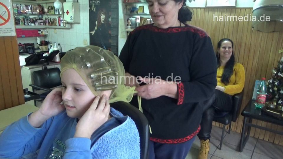6229 NinaSM young girl shampoo and metal rollers wetset