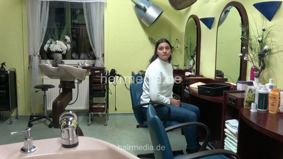 6231 AntoniaMZ by Nora 1 teen barberette student backward shampooing in blue apron