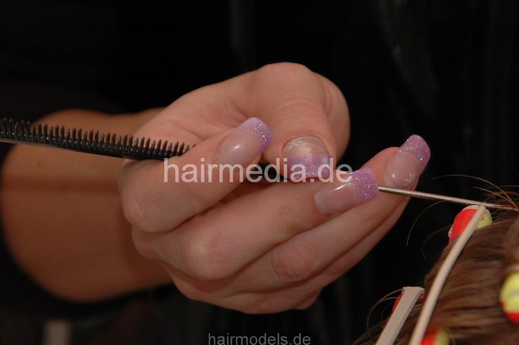 720 LenaG 2 forced fake perm in several capes and caps by vinyl apron hairdresser