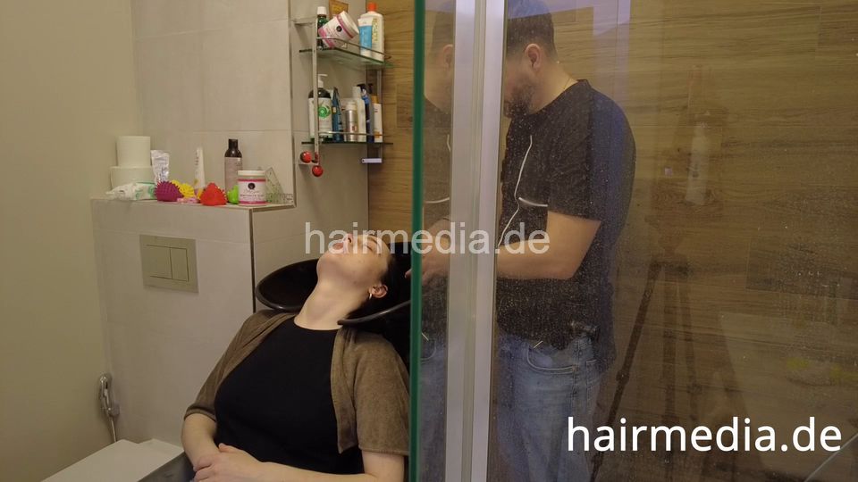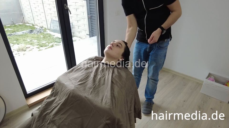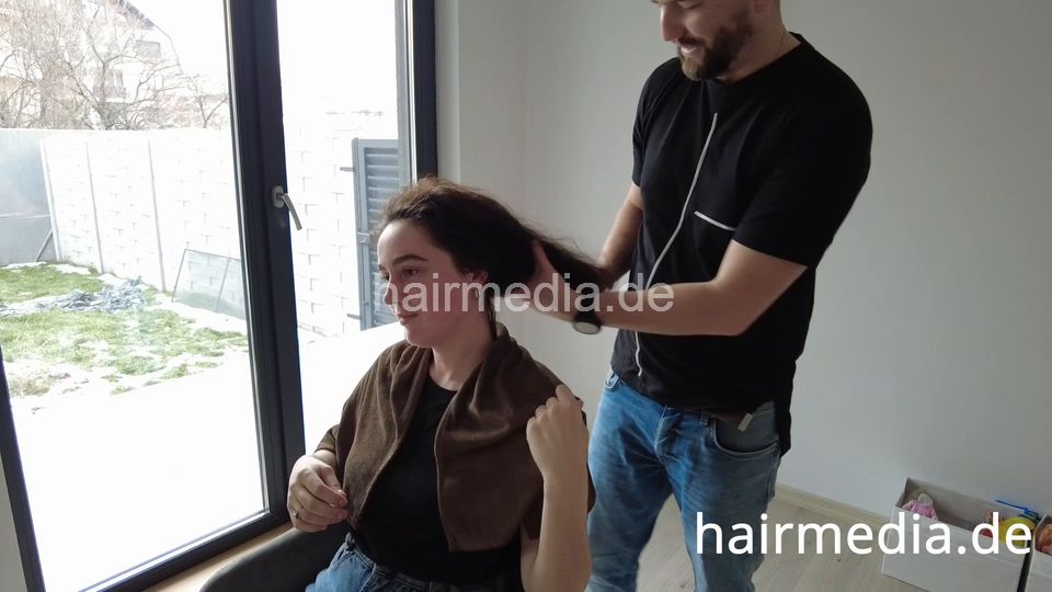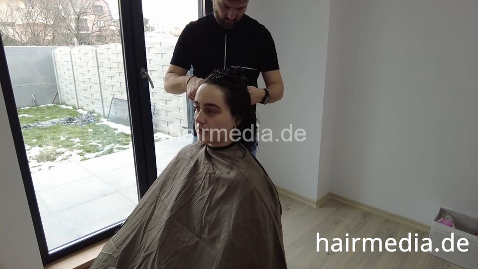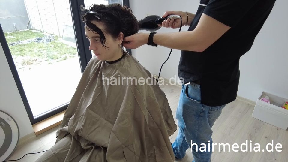 7204 Julia in Romania Bucharest shampoo cut and blow permed hair