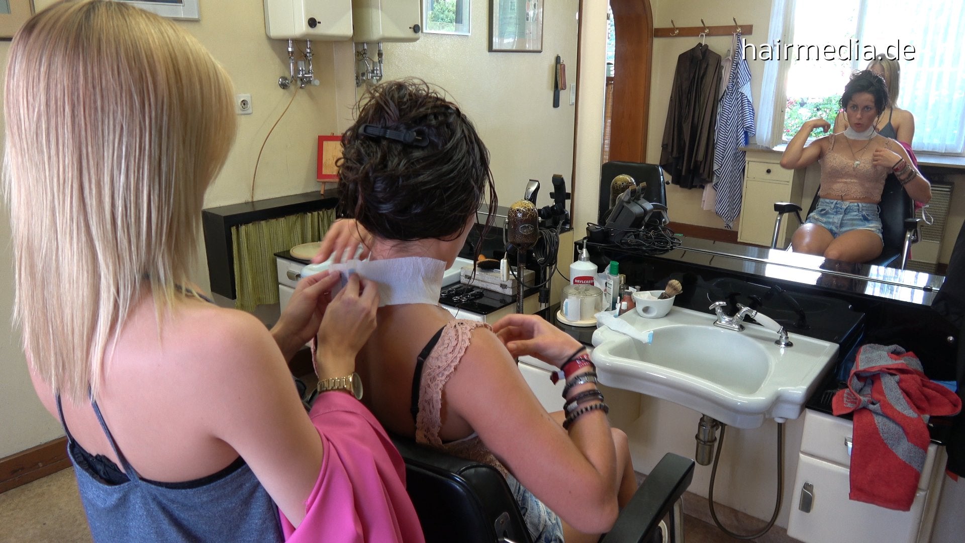 8145 Maleen 4 cut after shampoo in barberchair armchair