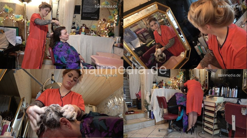 8149 f1 by MariaK 1 forward shampoo hairwash in red Dederon apron