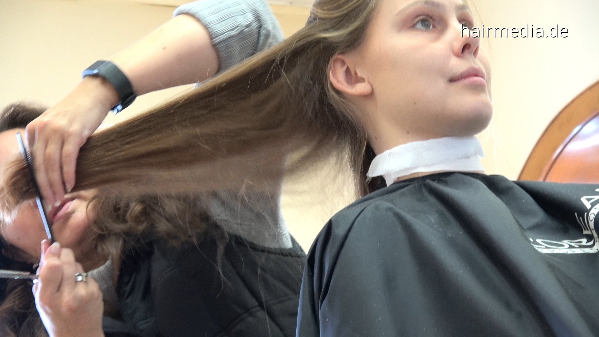 8300 JohannaS drycut haircut dry in barbershop old fashioned by mature barberette