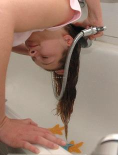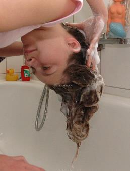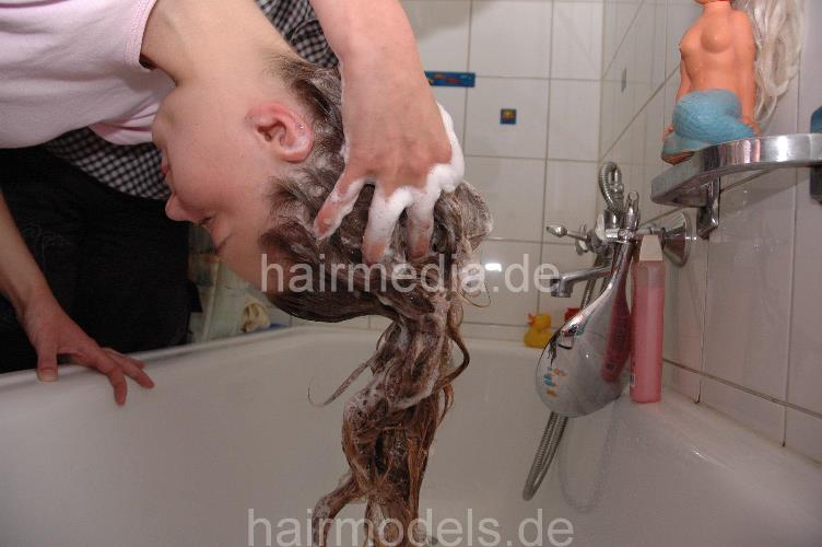 9000 Sabine in Munich by Conny shampooing at home forward over bathtub