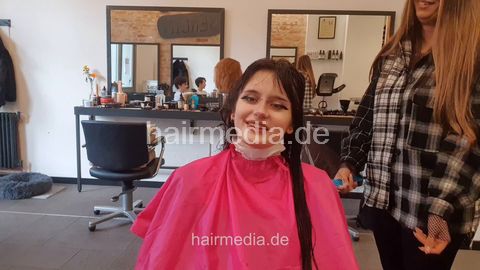 Introducing NatalieK's haircut and blow dry by barberette Zoya video! Let Zoya herself take care of your hair with her expert cutting and styling techniques. Sit back and relax as your locks are transformed into a stylish masterpiece. Trust us, Zoya knows what's she's doing.