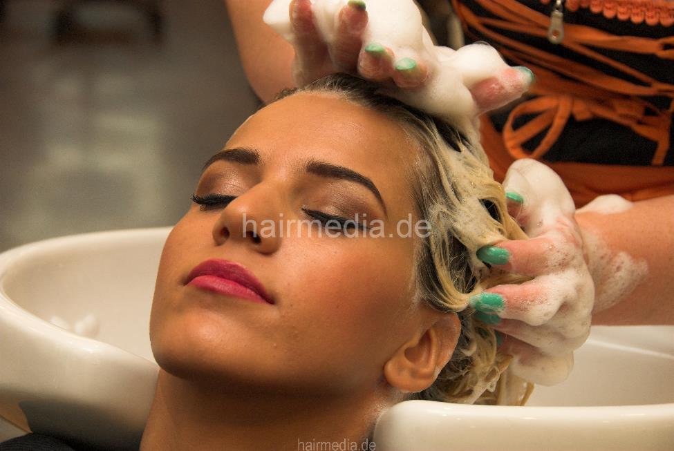 1020 1 Ernita backward wash blonde bleached hair in salon bavarian folk style barberette