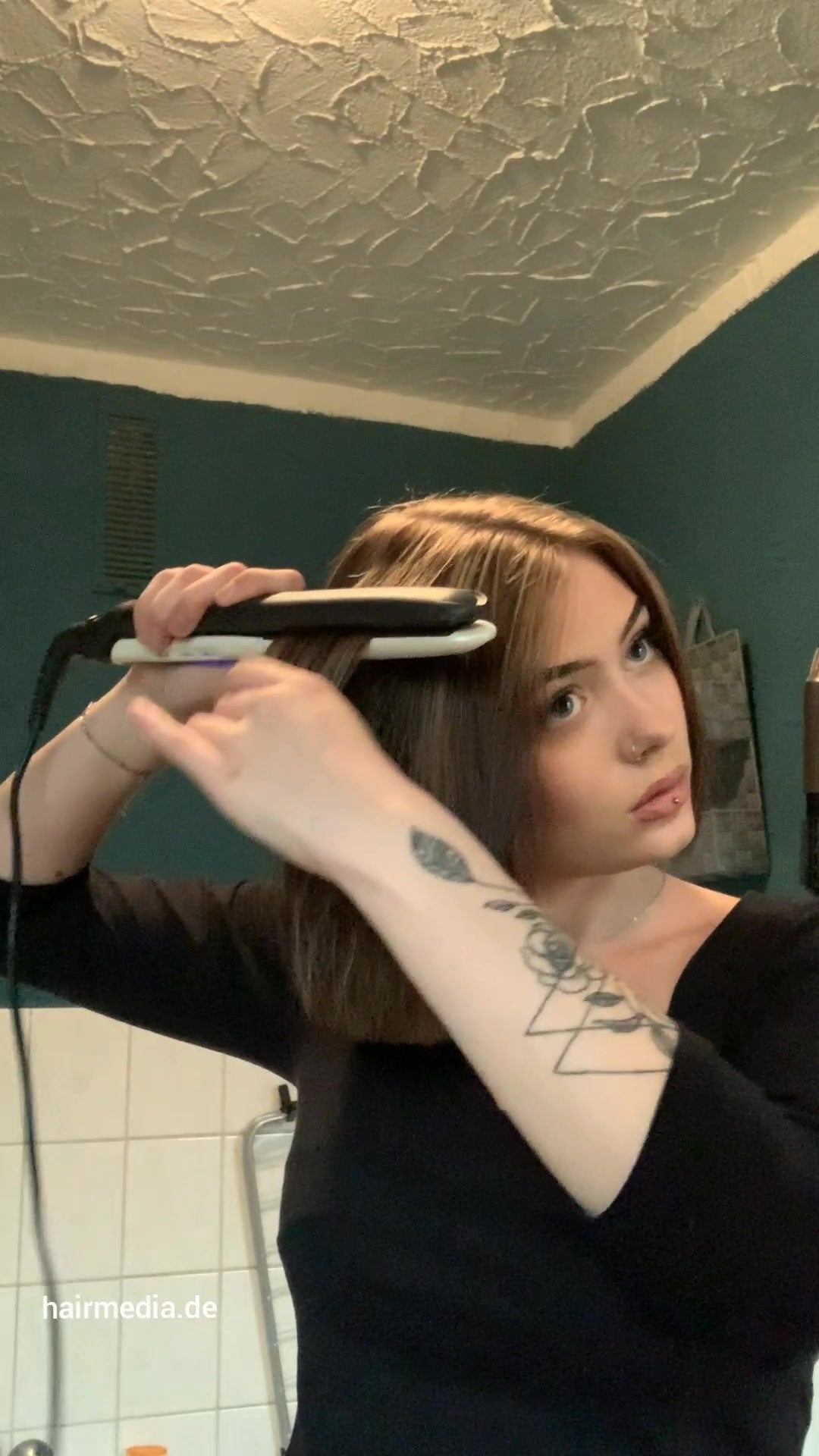 student barberette PaulineF self shampoo, hair care, blow dry and curling iron straightening at home