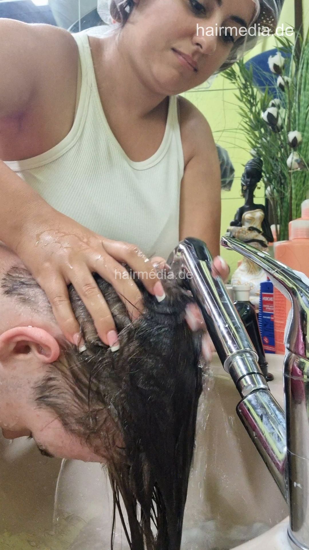 1227 Lars by LuisaB 2 forward shampooing hairwash by barberette in rollers - vertical video