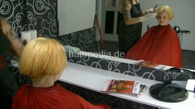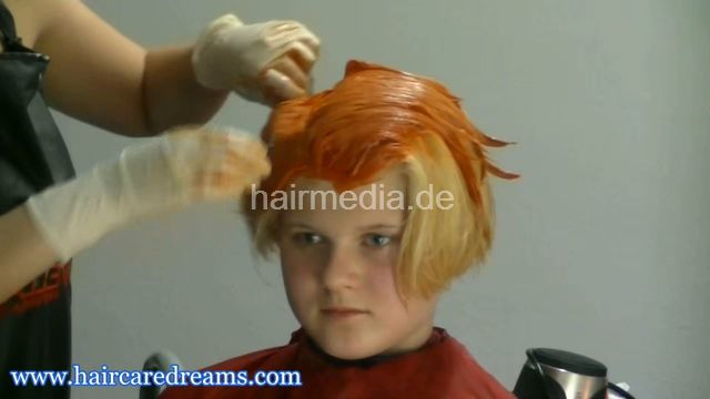 1902 young girl dramatical haircut and bleaching Part 2: coloring fire red