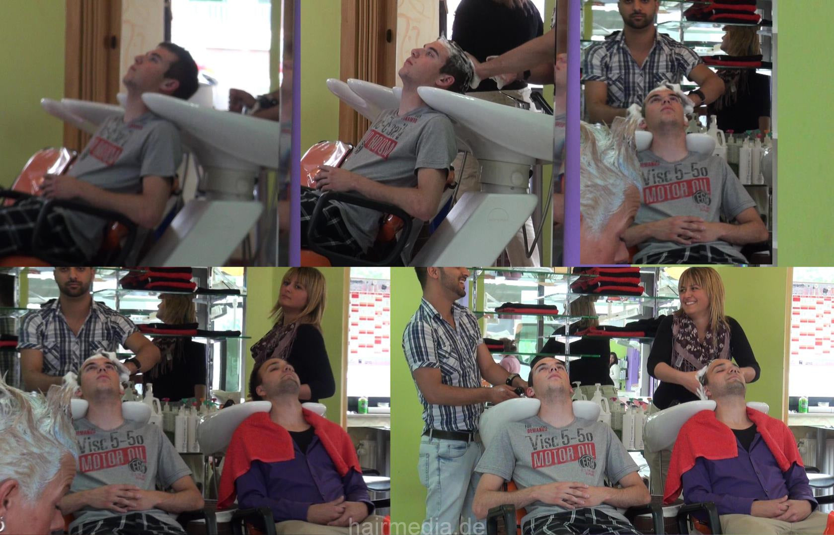 277 s0438 synced doublewash 2 male clients backward salon shampooing